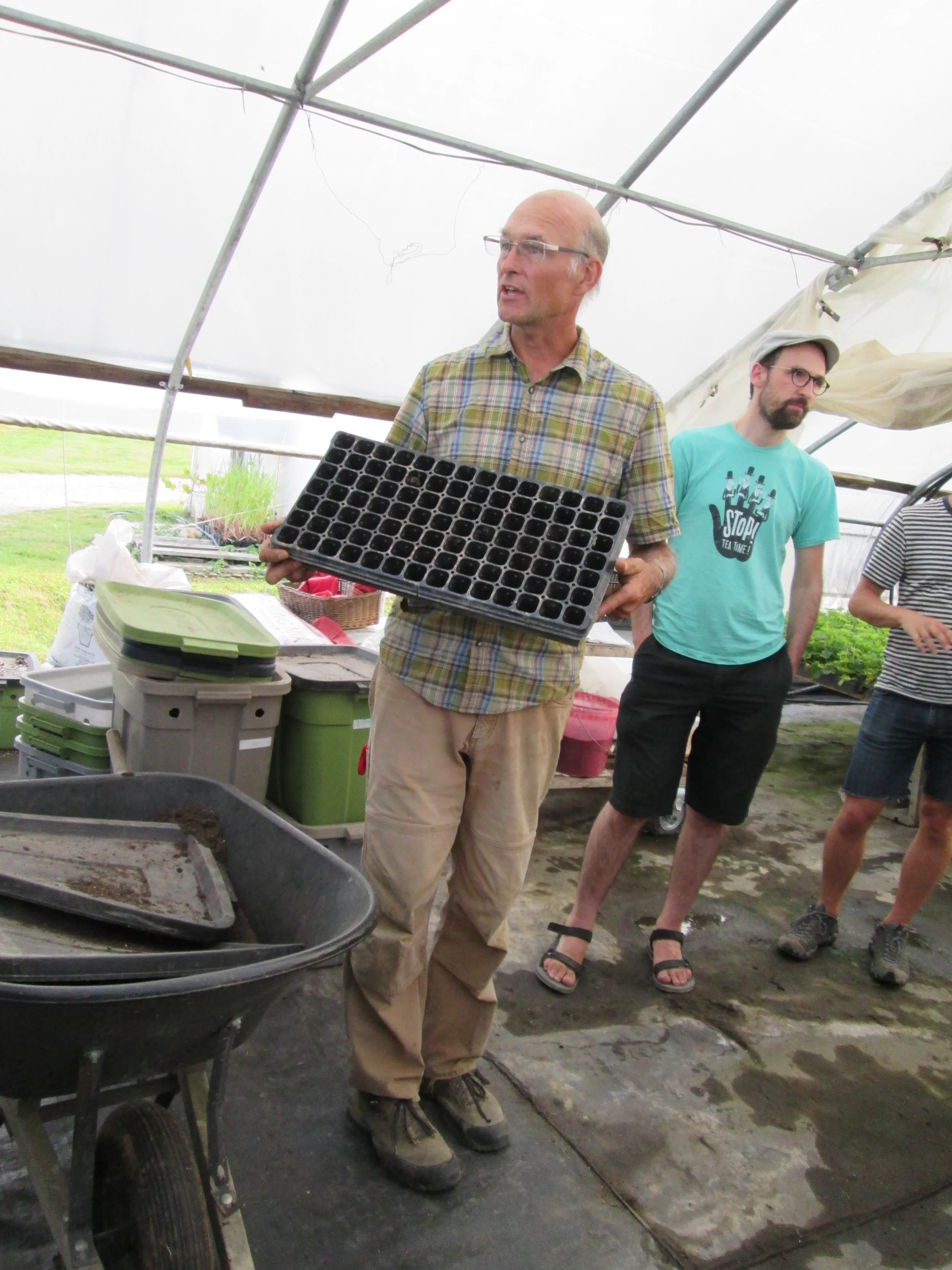 As an experienced farmer, Ted knows, without seeing the evidence, when a field is ready for weeding. Pointing to one tractor and then another, he shows us that one works between the rows, the other to weed within the row. Asked if he has his weeding schedules on a spreadsheet he says no. It’s all in his head—the information that will allow him to provide 22 weeks of vegetables for a total of 1100 shares.